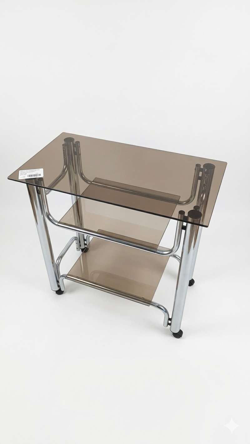 Un tocco di stile vintage e funzionale per il tuo salotto. Questo pratico mobiletto su ruote, perfetto come supporto per TV o apparecchiature Hi-Fi, evoca l'estetica degli anni '80 con la sua combinazione di materiali eleganti e linee pulite.